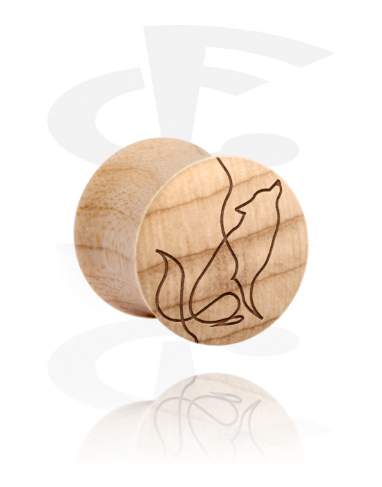 Plug z dwoma ściankami (drewno) z grawerem laserowym „wilk rysowany jedną linią”