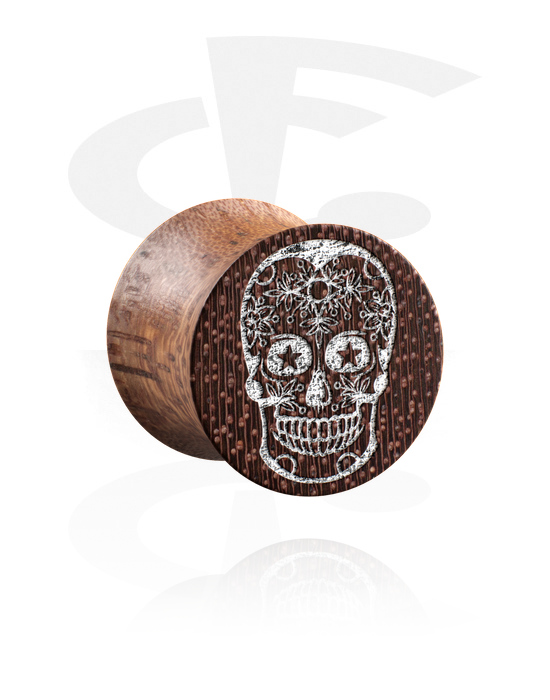 Plug z dwoma ściankami (drewno) z motywem cukrowej czaszki „Dia de los Muertos”