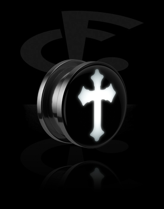 Tunel z odkręcaną ścianką (stal chirurgiczna, srebro, błyszczące wykończenie) z nakrętką LED i motywem krzyża