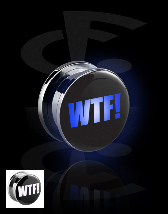 Tunel z odkręcaną ścianką (stal chirurgiczna, czarny, błyszczące wykończenie) z nakrętką LED i napisem „WTF!”
