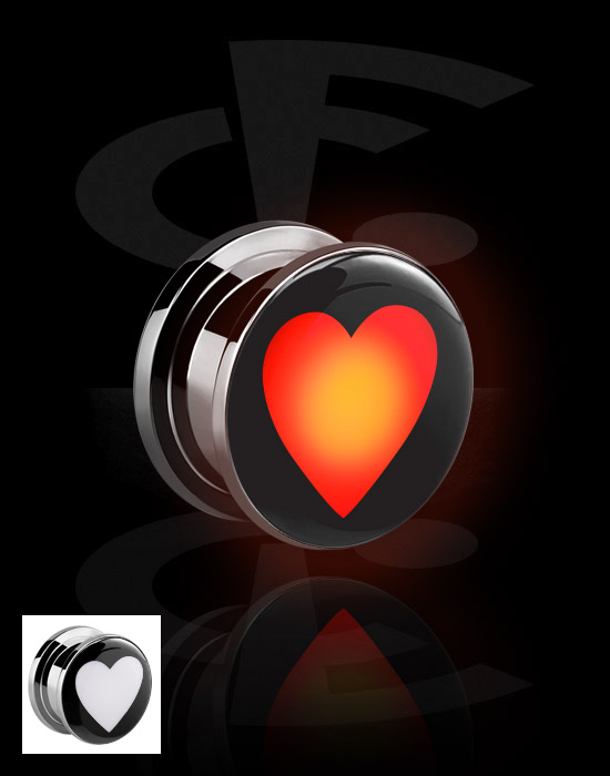 Tunel z odkręcaną ścianką (stal chirurgiczna, srebro, błyszczące wykończenie) z nakrętką LED i wzorem serca