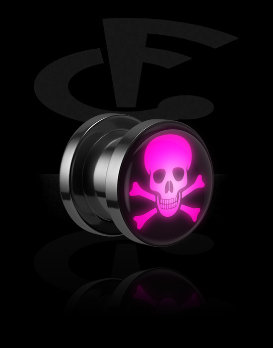 Tunel z odkręcaną ścianką (stal chirurgiczna, srebro, błyszczące wykończenie) z nakrętką LED i czaszką