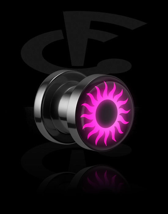 Tunel z odkręcaną ścianką (stal chirurgiczna, srebro, błyszczące wykończenie) z nakrętką LED i wzorem słońca