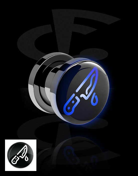 Tunel z odkręcaną ścianką (stal chirurgiczna, srebro, błyszczące wykończenie) z neonowym Halloweenowym wzorem „nóż”