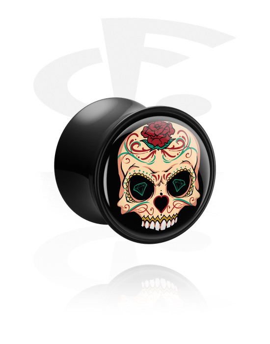 Tunel z dwoma ściankami (akryl, czarny) z motywem kolorowej cukrowej czaszki „Dia de los Muertos”