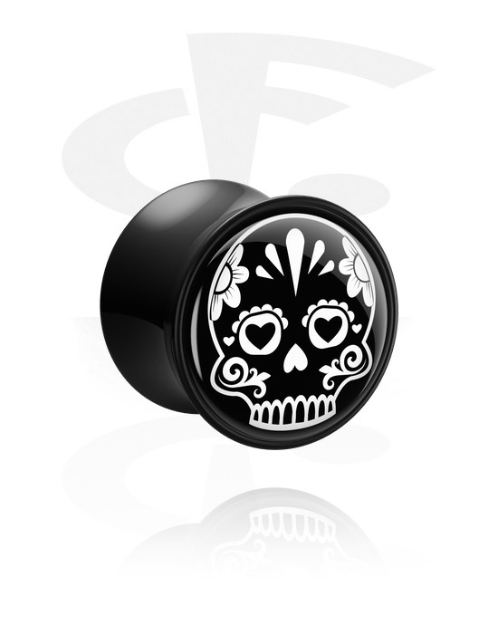 Tunel z dwoma ściankami (akryl, czarny) z motywem biało-czarnej cukrowej czaszki „Dia de los Muertos”