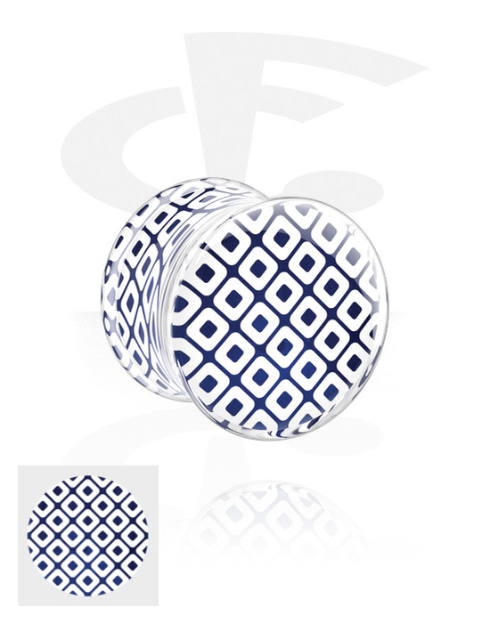 In stock with diameters from 10 mm up to 30 mm. Decorate your ears with this showcase blue and white combo.