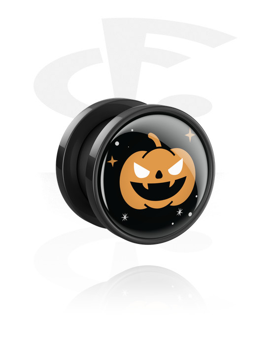 Tunel z odkręcaną ścianką (akryl, czarny) z wzorem Halloweenowej „szalonej dyni”