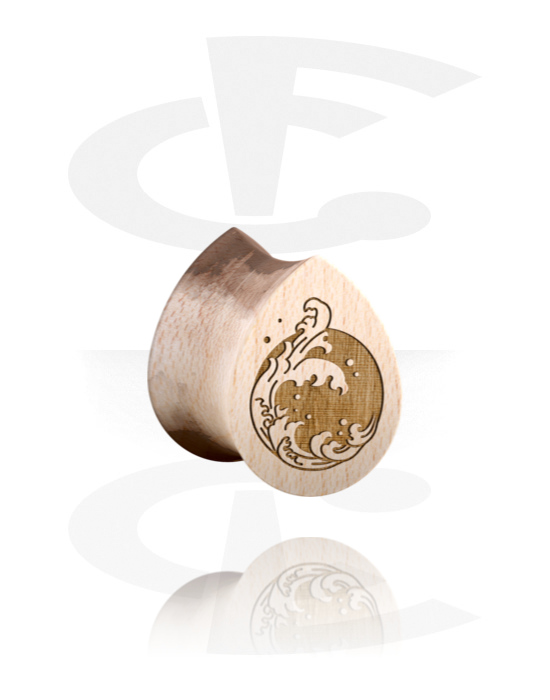 Plug z dwoma ściankami w kształcie łezki (drewno) z grawerem laserowym „fale wody”