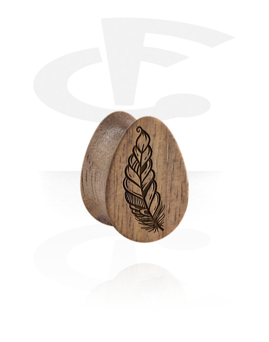 Plug z dwoma ściankami w kształcie łezki (drewno) z grawerem laserowym „pióro”