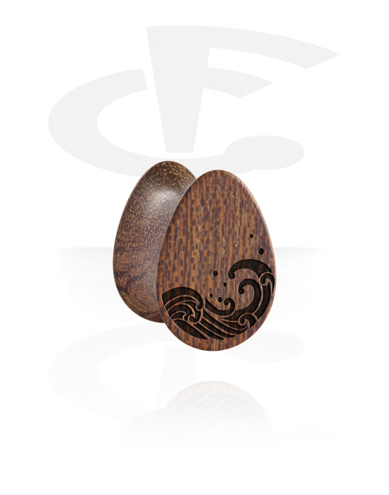 Plug z dwoma ściankami w kształcie łezki (drewno) z grawerem laserowym „fale wody”