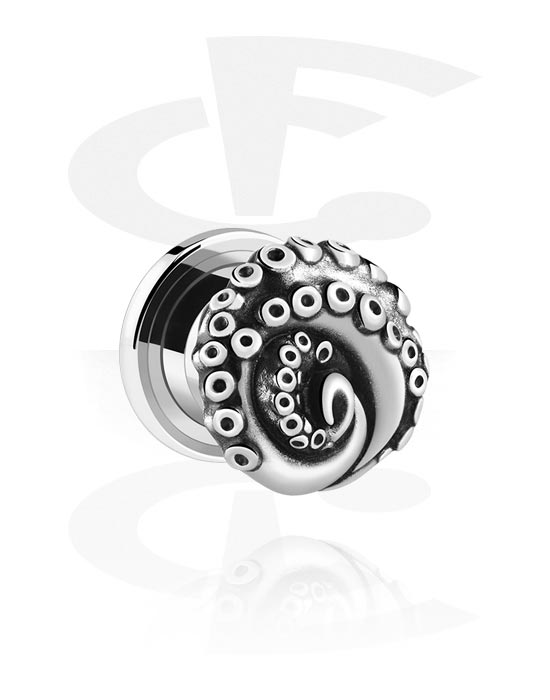 Tunel z odkręcaną ścianką (stal chirurgiczna, srebro, błyszczące wykończenie) z Octopus tentacle design