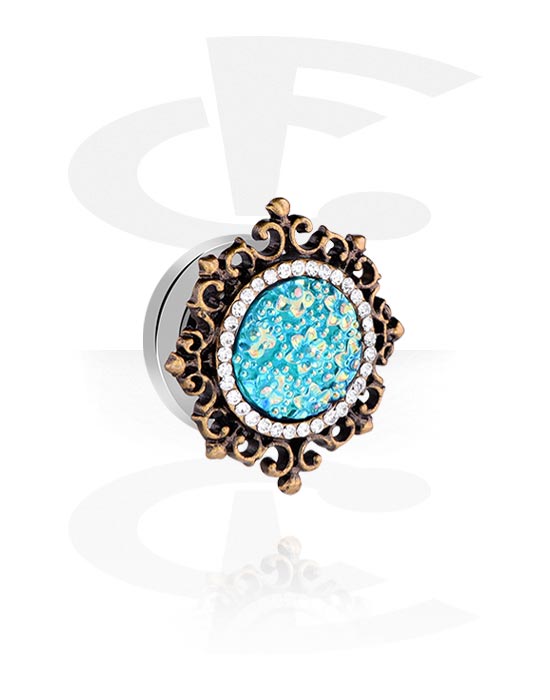 Tunel z odkręcaną ścianką (stal chirurgiczna, srebro, błyszczące wykończenie) z wzorem vintage i kryształami