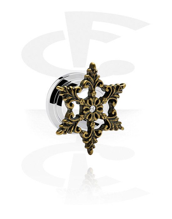 Tunel z odkręcaną ścianką (stal chirurgiczna, srebro, błyszczące wykończenie) z wzorem śnieżynki i z kryształem