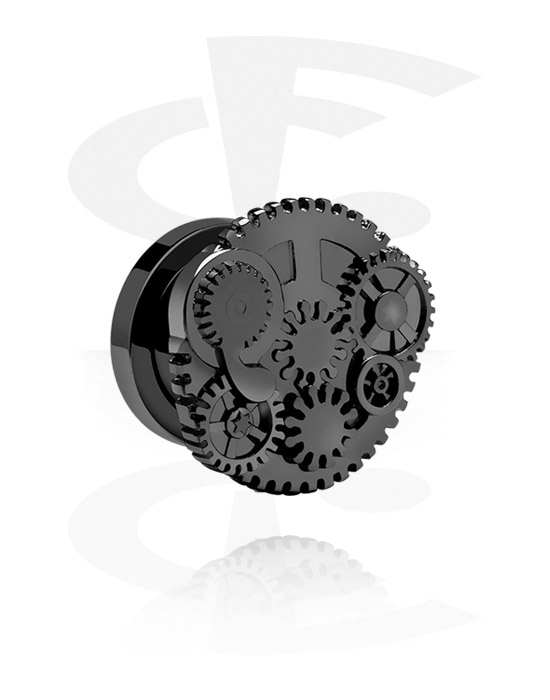 Tunel z odkręcaną ścianką (stal chirurgiczna, czarny, błyszczące wykończenie) z ze steampunkowym wzorem