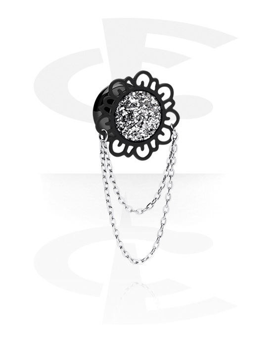Tunel z dwoma ściankami (stal chirurgiczna, czarny, błyszczące wykończenie) z wzorem vintage i z łańcuszkiem