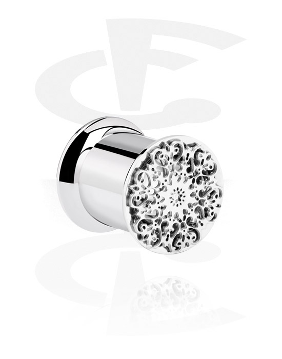 Tunel z dwoma ściankami (stal chirurgiczna, srebro, błyszczące wykończenie) z mandalą