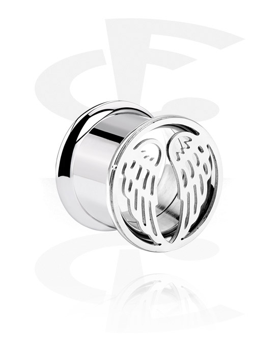 Tunel z dwoma ściankami (stal chirurgiczna, srebro, błyszczące wykończenie) z wzorem skrzydła