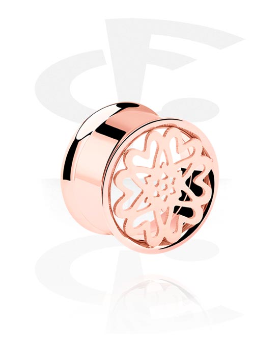 Tunel z dwoma ściankami (stal chirurgiczna, różowe złoto, błyszczące wykończenie) z wzorem serca