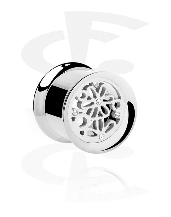 Tunel z dwoma ściankami (stal chirurgiczna, srebro, błyszczące wykończenie) z kwiatem i kryształami