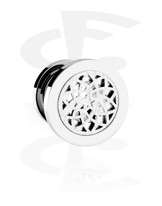 Tunel z odkręcaną ścianką (stal chirurgiczna, srebro, błyszczące wykończenie) z mandalą