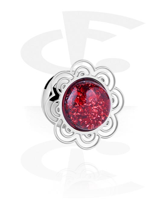 Tunel z dwoma ściankami (stal chirurgiczna, srebro, błyszczące wykończenie) z kwiatem i brokatem