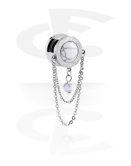 Tunel z odkręcaną ścianką (stal chirurgiczna, srebro, błyszczące wykończenie) z wzorem marmuru i z łańcuszkiem