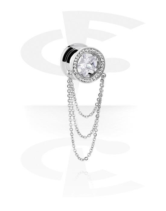 Tunel z odkręcaną ścianką (stal chirurgiczna, srebro, błyszczące wykończenie) z kryształami i z łańcuszkiem