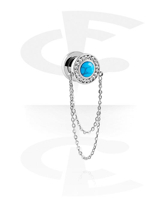 Tunel z odkręcaną ścianką (stal chirurgiczna, srebro, błyszczące wykończenie) z kryształami i z łańcuszkiem