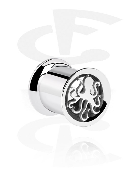 Tunel z dwoma ściankami (stal chirurgiczna, srebro, błyszczące wykończenie) z ośmiornicą