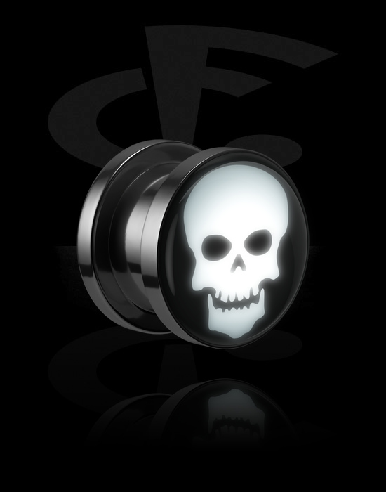 Tunel z odkręcaną ścianką (stal chirurgiczna, srebro, błyszczące wykończenie) z nakrętką LED i czaszką