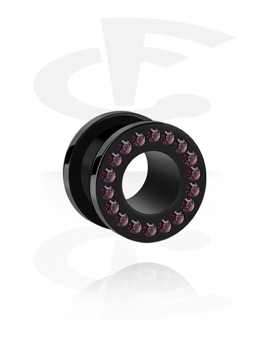 Este túnel flesh de acrílico preto é complementado com pedras de cristal cintilantes e é ao mesmo tempo simples , clássico e elegante.