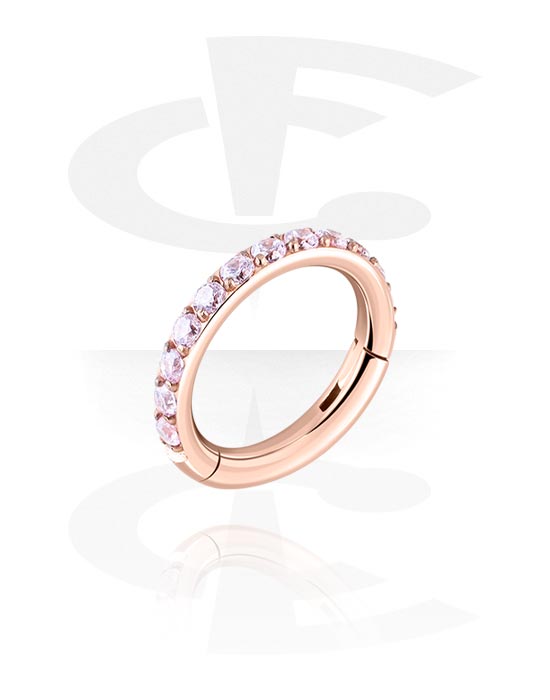 Este anel segmento de dobradiça é feito de aço cirúrgico banhado a ouro rosé de alta qualidade e é quase completamente coberto com maravilhosas pedras de cristal brilhantes que fazem deste piercing um verdadeiro atractivo.