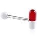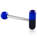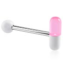 This barbell made of surgical steel features a ball on one end and a pill on the other. A funky variation to the standard barbell. Looks good from either side.