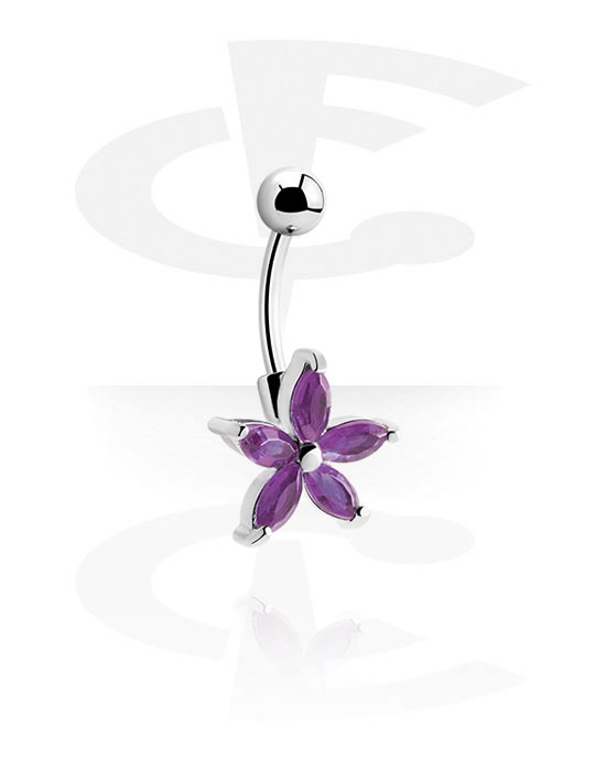 Krúžok do pupku (chirurgická oceľ, strieborná, lesklý povrch) s ozdoba kvetina a kryštálové kamene