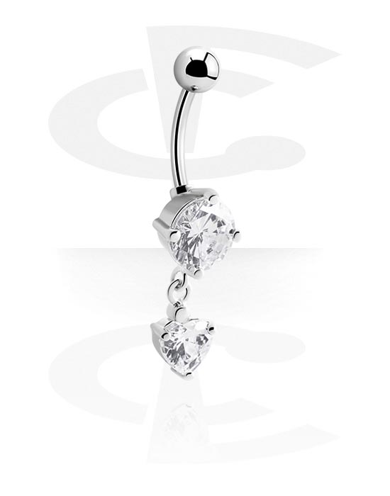 Krúžok do pupku (chirurgická oceľ, strieborná, lesklý povrch) s kryštálové kamene