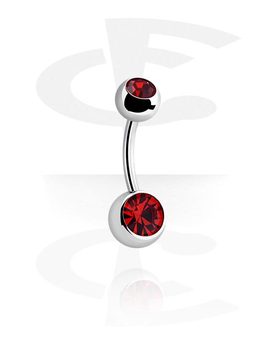 Krúžok do pupku (chirurgická oceľ, strieborná, lesklý povrch) s kryštálové kamene