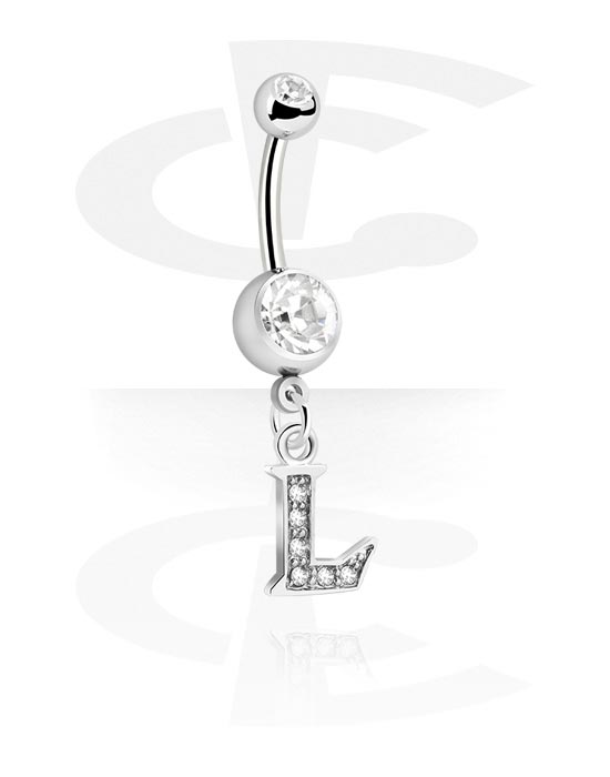 Krúžok do pupku (chirurgická oceľ, strieborná, lesklý povrch) s príveskom s písmenom „L“ a kryštálové kamene