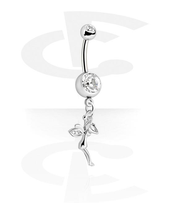 Krúžok do pupku (chirurgická oceľ, strieborná, lesklý povrch) s príveskom víla a kryštálové kamene