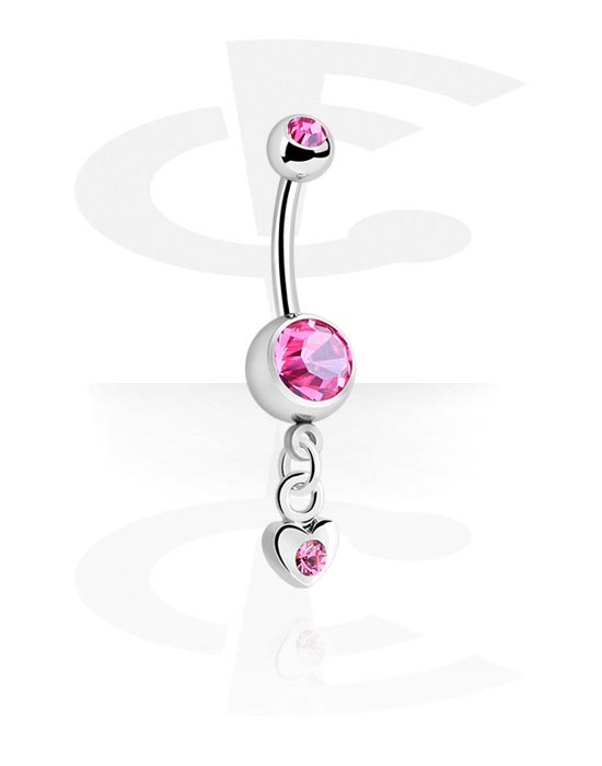 Krúžok do pupku (chirurgická oceľ, strieborná, lesklý povrch) s prívesok srdce a kryštálové kamene