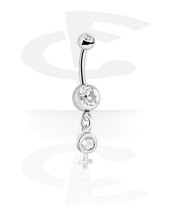 Krúžok do pupku (chirurgická oceľ, strieborná, lesklý povrch) s príveskom so symbolom Venuša a kryštálové kamene