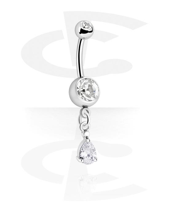 Krúžok do pupku (chirurgická oceľ, strieborná, lesklý povrch) s Prívesok a kryštálové kamene
