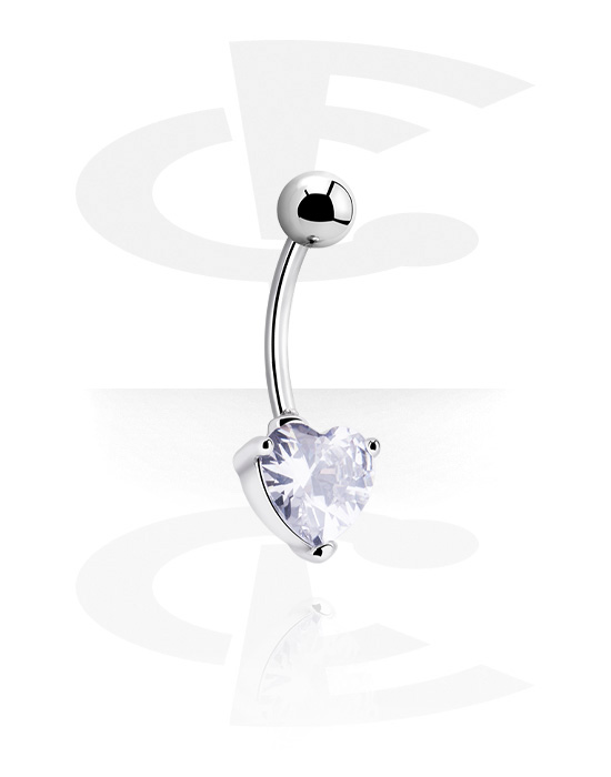 Krúžok do pupku (chirurgická oceľ, strieborná, lesklý povrch) s Motív srdca a Kryštálový kameň
