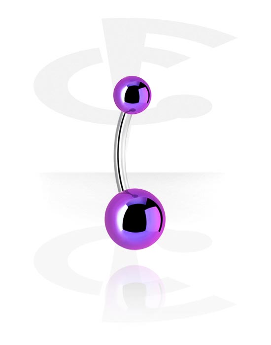 Krúžok do pupku (chirurgická oceľ, strieborná, lesklý povrch) s eloxovanými guľôčkami