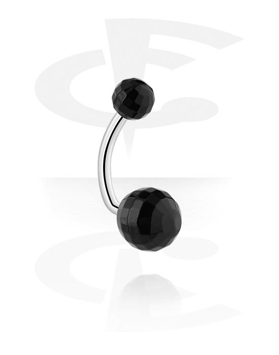 This curved barbell made of surgical steel features two faceted spheres made of acrylic. Available in different colours. Have a look and take your pick.