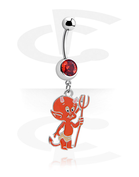 Krúžok do pupku (chirurgická oceľ, strieborná, lesklý povrch) s príveskom diabol a Kryštálový kameň