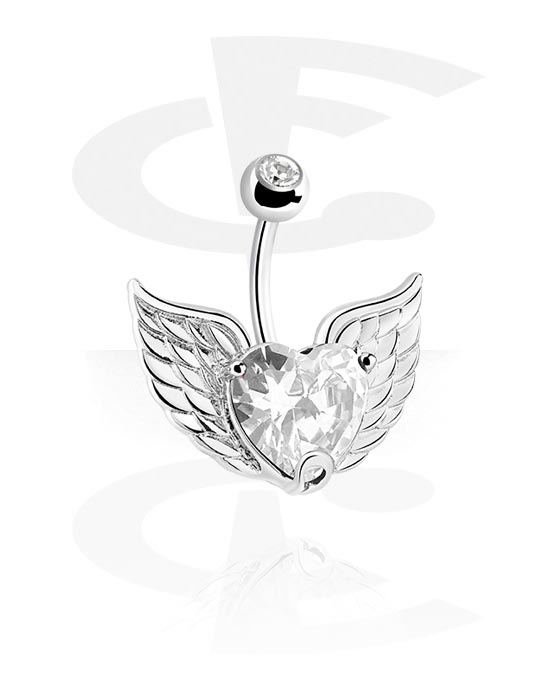 Krúžok do pupku (chirurgická oceľ, strieborná, lesklý povrch) s Motív srdca a kryštálové kamene
