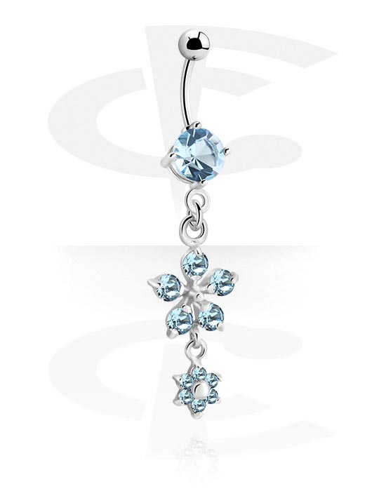 Krúžok do pupku (chirurgická oceľ, strieborná, lesklý povrch) s príveskom kvetina a kryštálové kamene