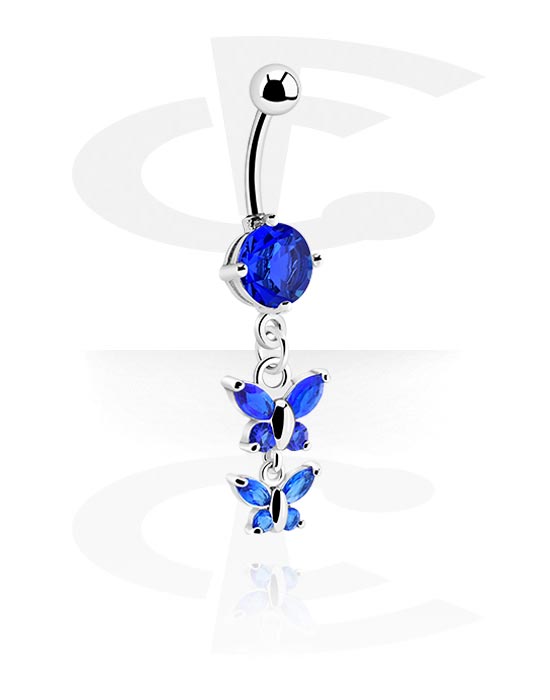 Krúžok do pupku (chirurgická oceľ, strieborná, lesklý povrch) s Prívesok motýľ a kryštálové kamene