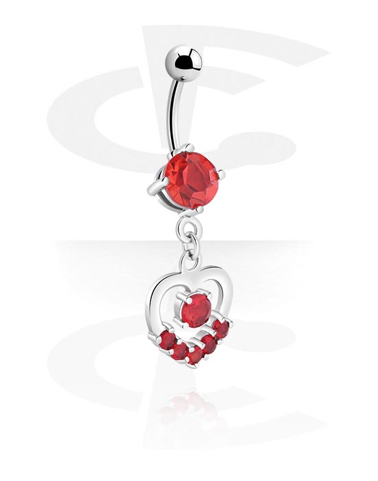 Krúžok do pupku (chirurgická oceľ, strieborná, lesklý povrch) s prívesok srdce a kryštálové kamene